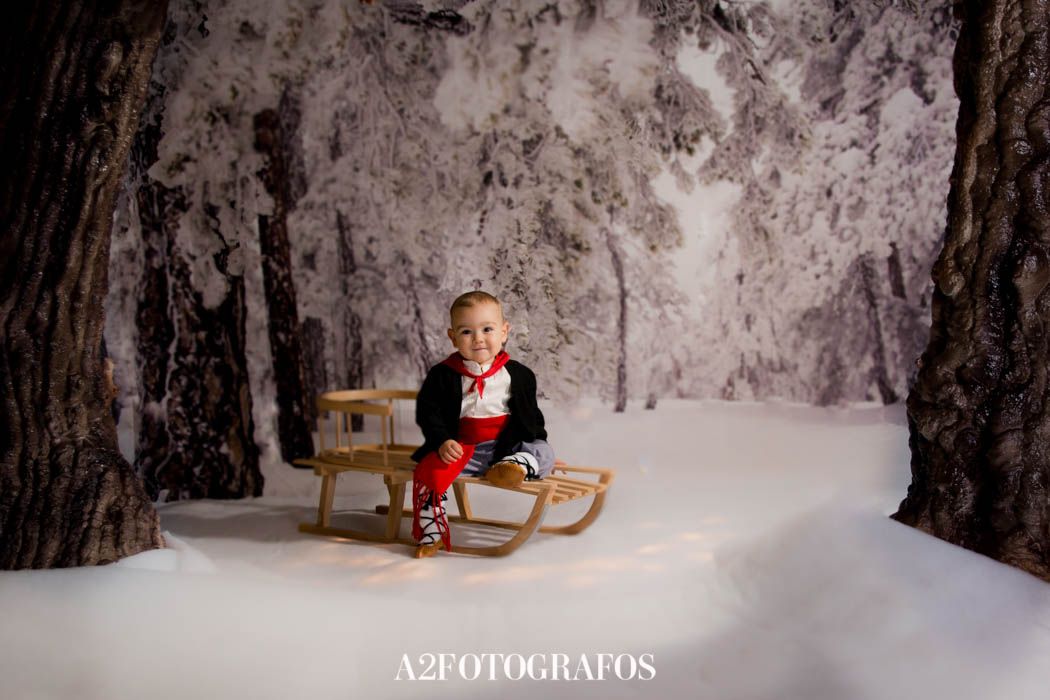 Los colores que quedan bien con los decorados son: marrón, ocre, crudo, gris, blanco, rojo y granate… Si traen algo de color blanco mejor que no sea una camiseta, pueden llevar encima una chaqueta o un pañuelo, para que no quede todo tan blanco. Si queréis traer gorrito de nieve o vestidos de fiesta quedarían geniales. Y, cómo no, los traje olentzero o nekita quedan muy bonitos para estas fotos.